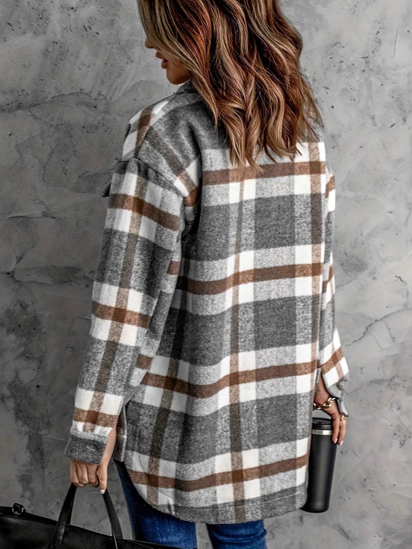 Oversized Plaid Flannel Shirt Jacket with Button Front