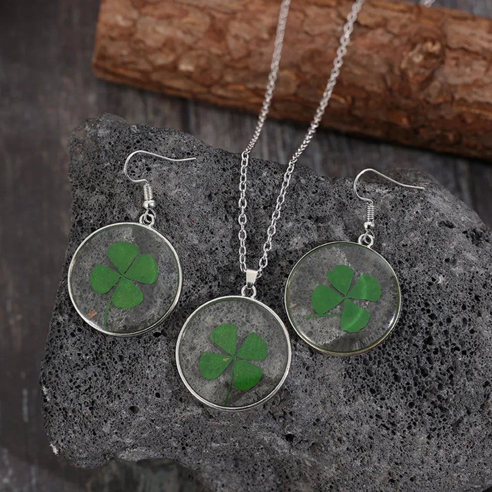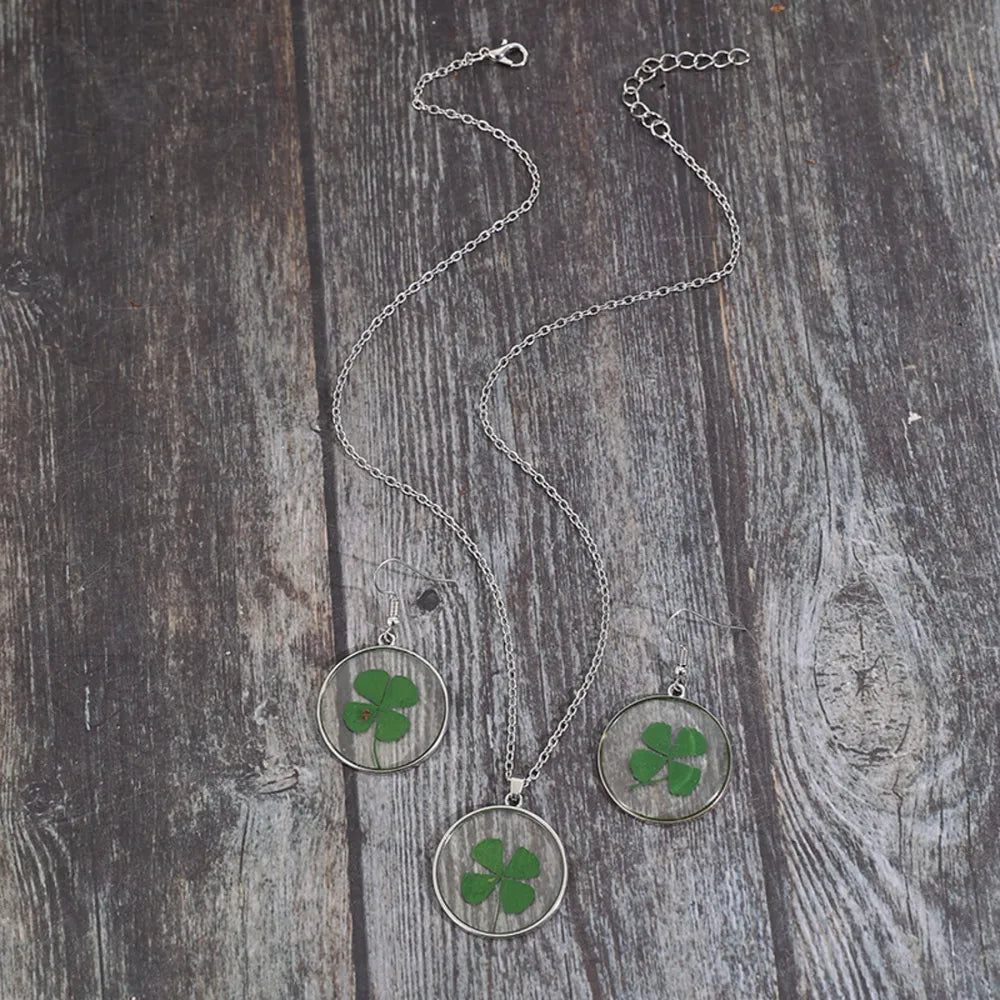 Lucky Clover Earrings and Necklace Jewelry Set